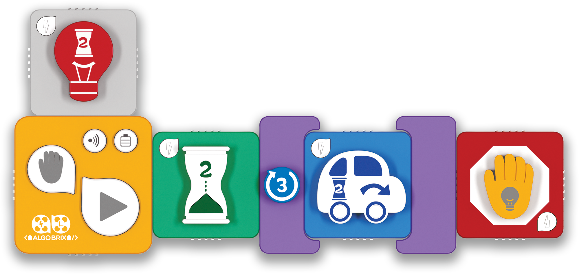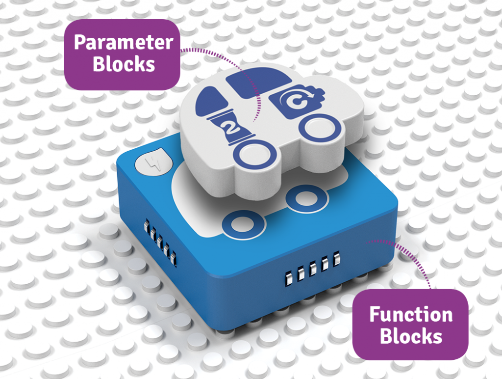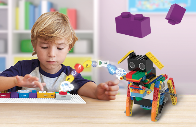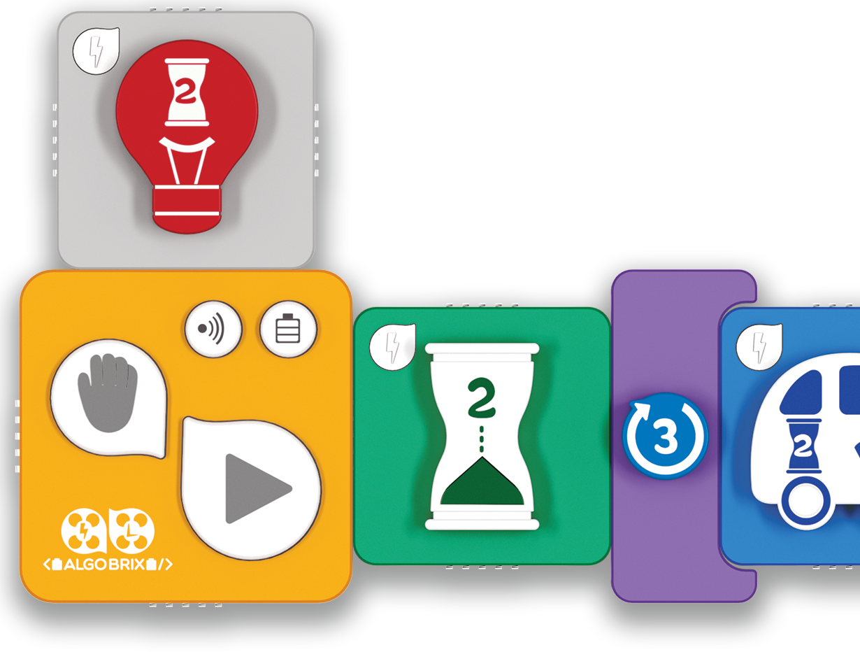 Az Algobrix® kézzelfogható kódolási nyelvvel a gyerekek egy modell elkészítésével kezdenek, majd a funkció és paraméter blokkok segítségével különféle kódsorokat hoznak létre. Majd a „Play” gomb megnyomásával a robot végrehajtja a kódolási szekvenciát.